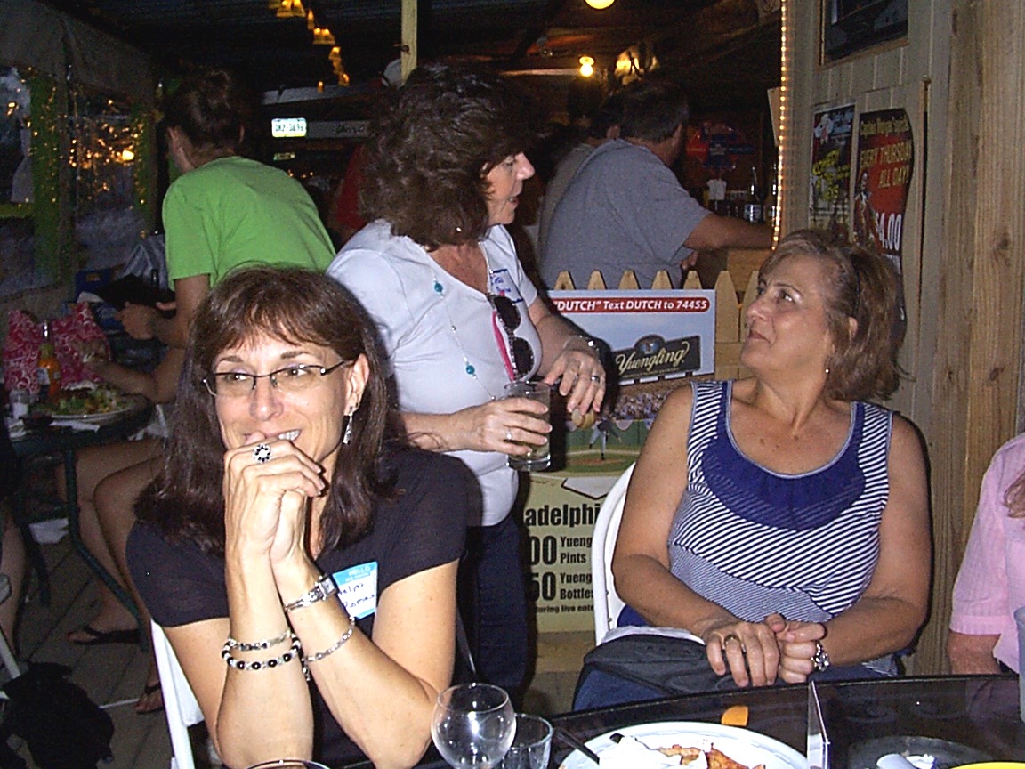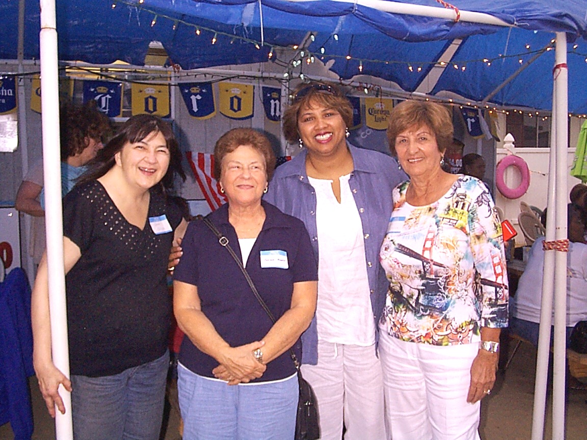 49: Evelyn Romano (front left), and Dottie Morris talking to Sue Farah