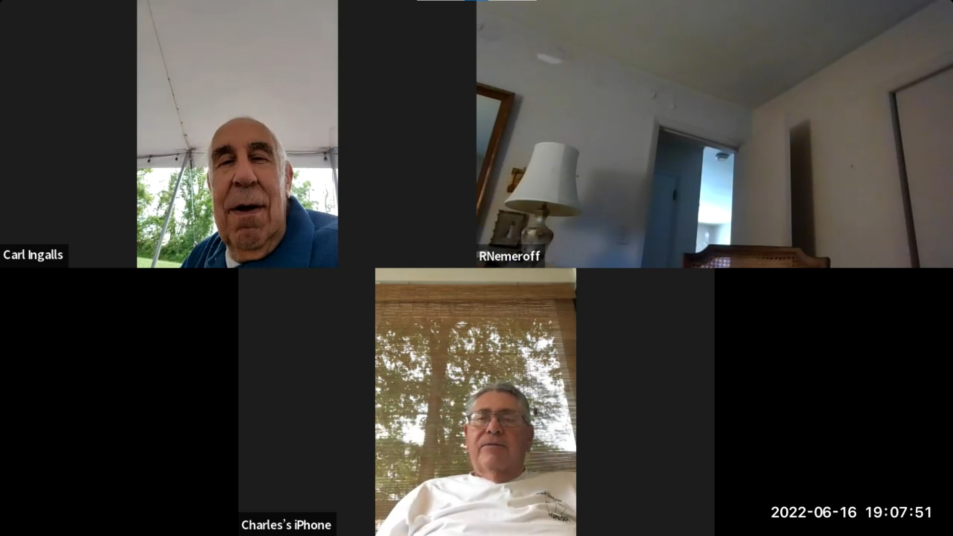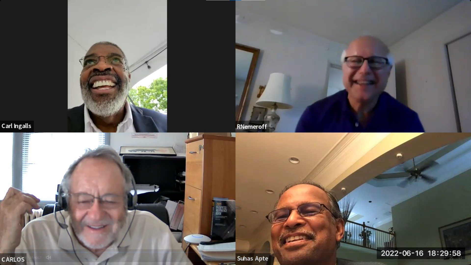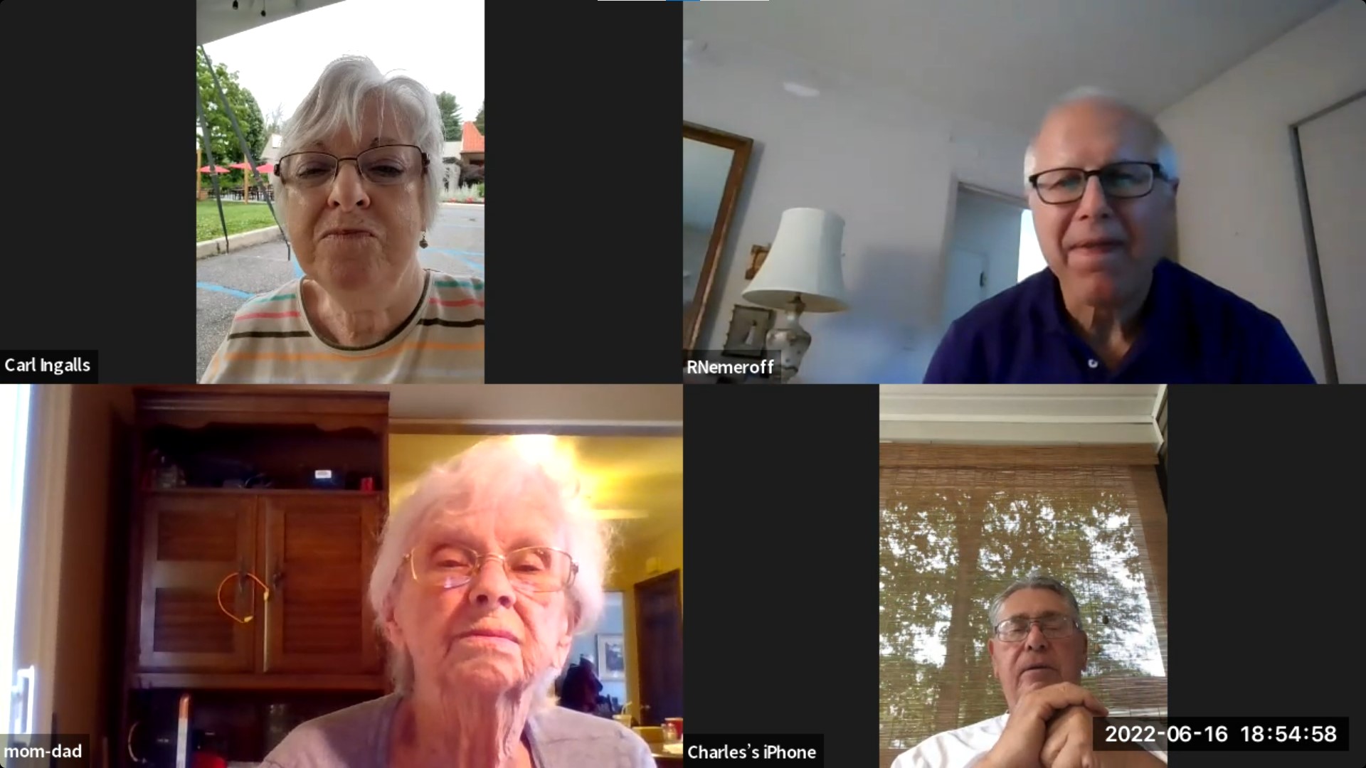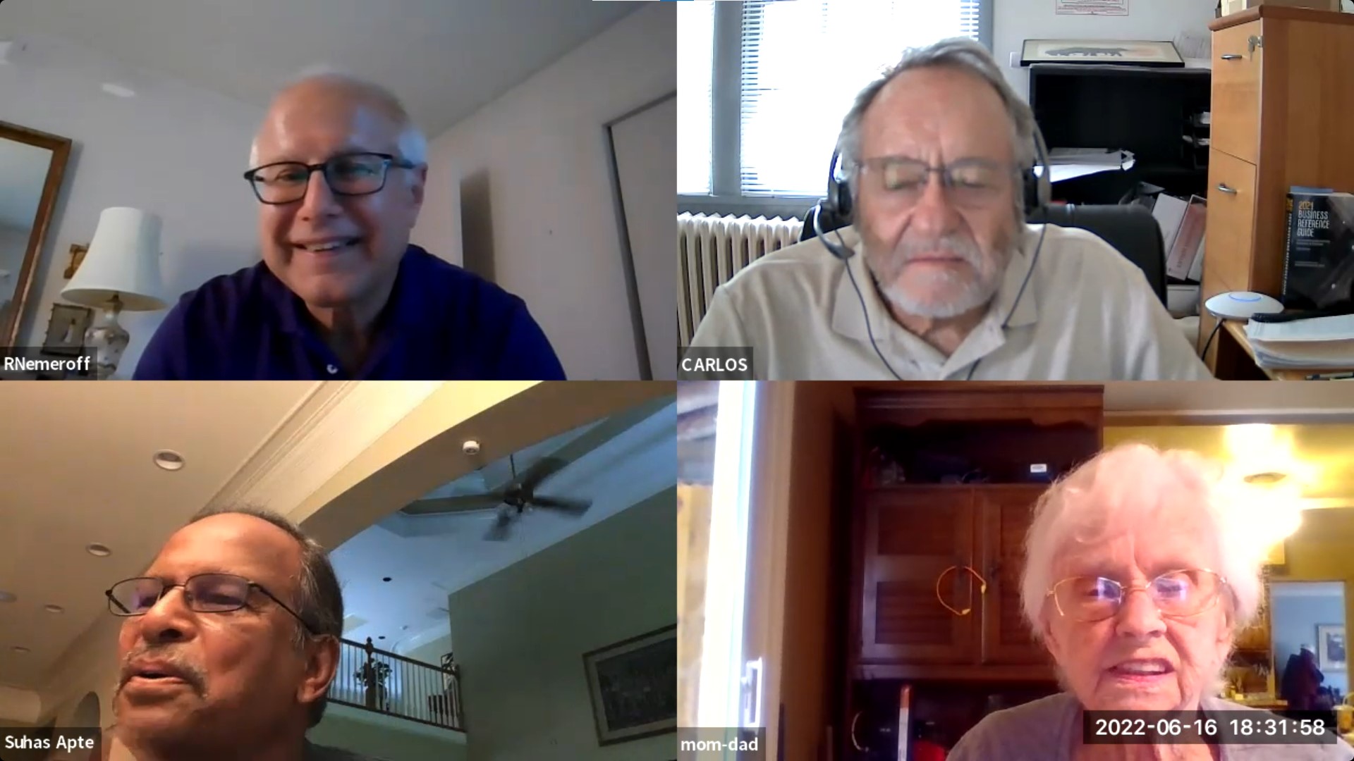 39: Rian Nemeroff, Carlos Duno, Suhas Apte, Fran Clark (as mom-dad on Zoom)
