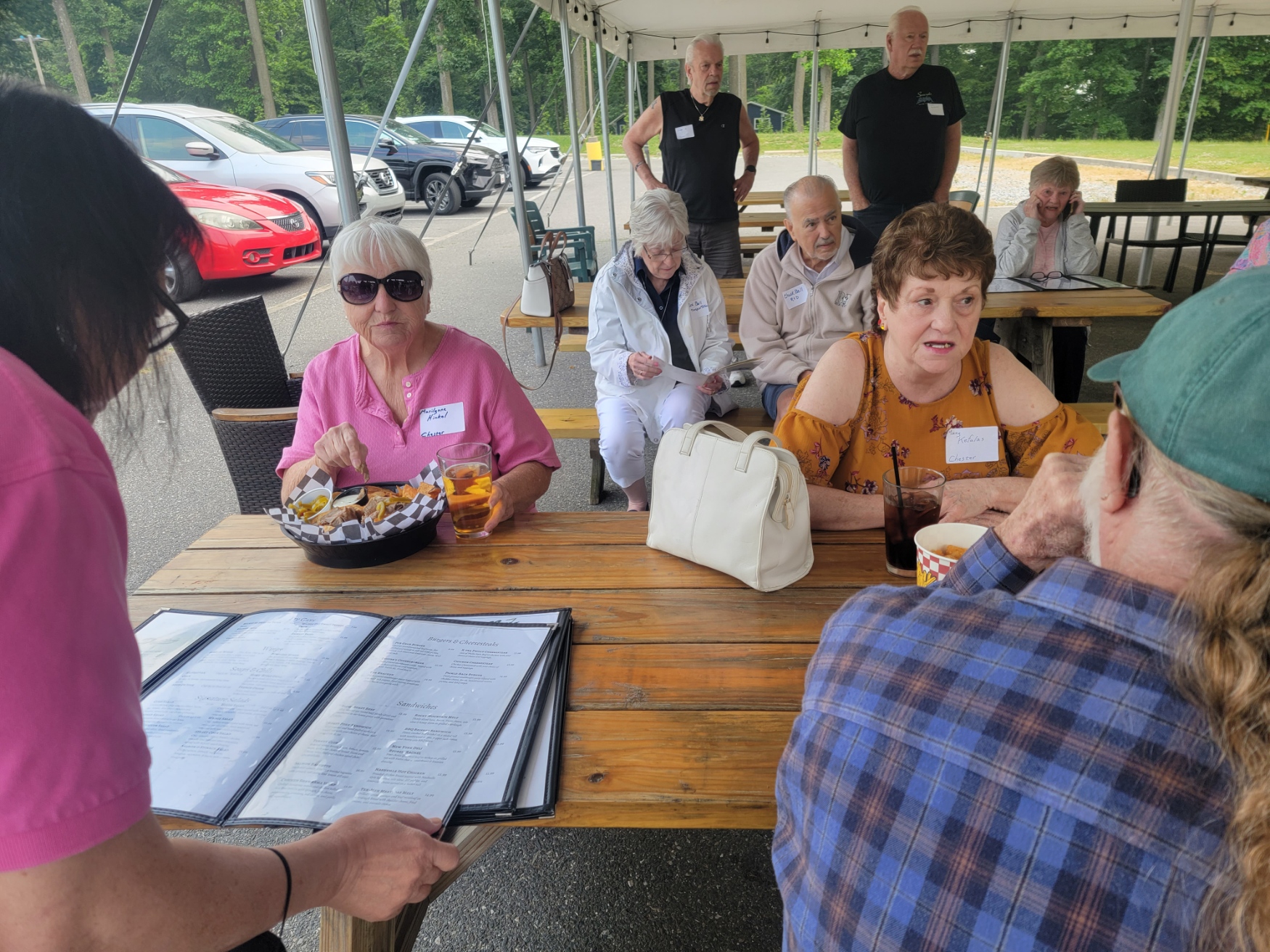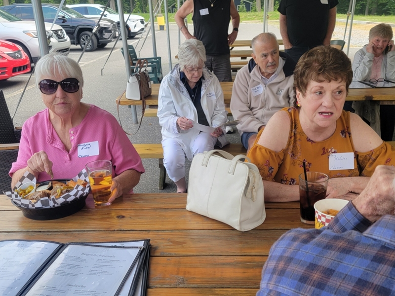 01: Marylyne (Mert) Hinkel, Carol and Chuck Bell (in background), Mary Kefalas