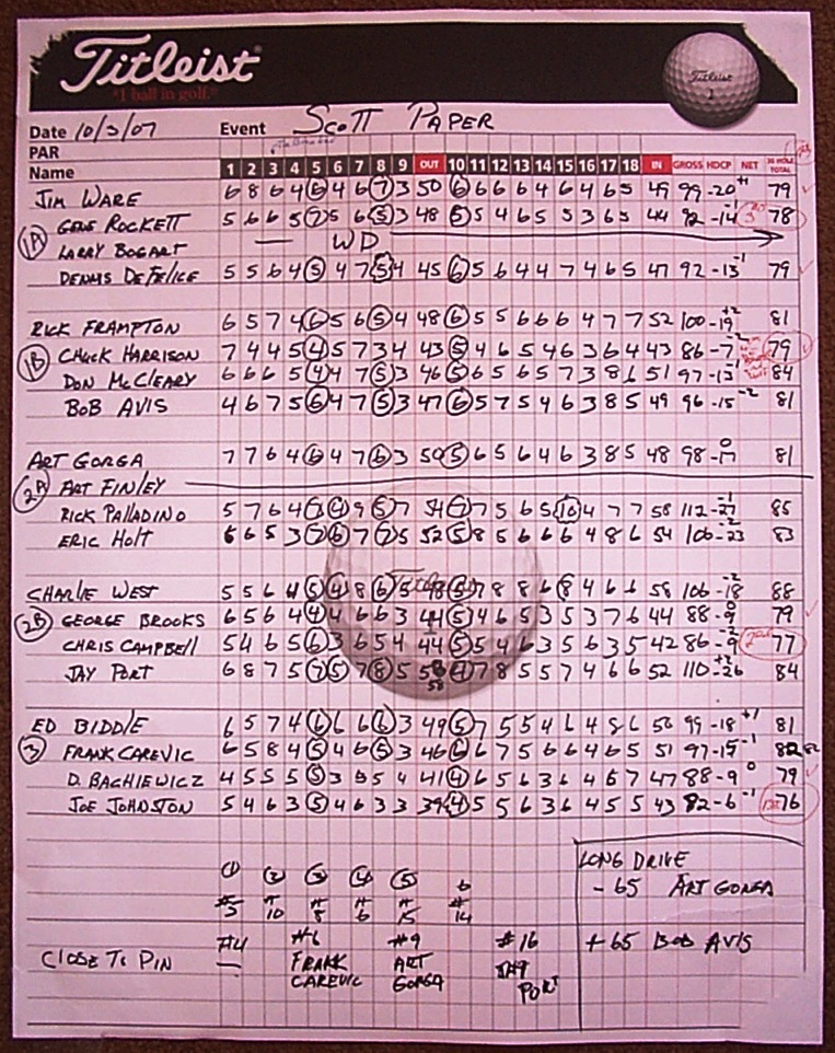 Please note that Bob Avis and Gene Rockett traded places after this scoresheet was created.