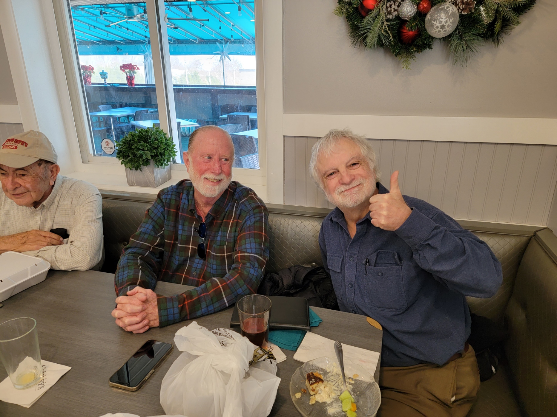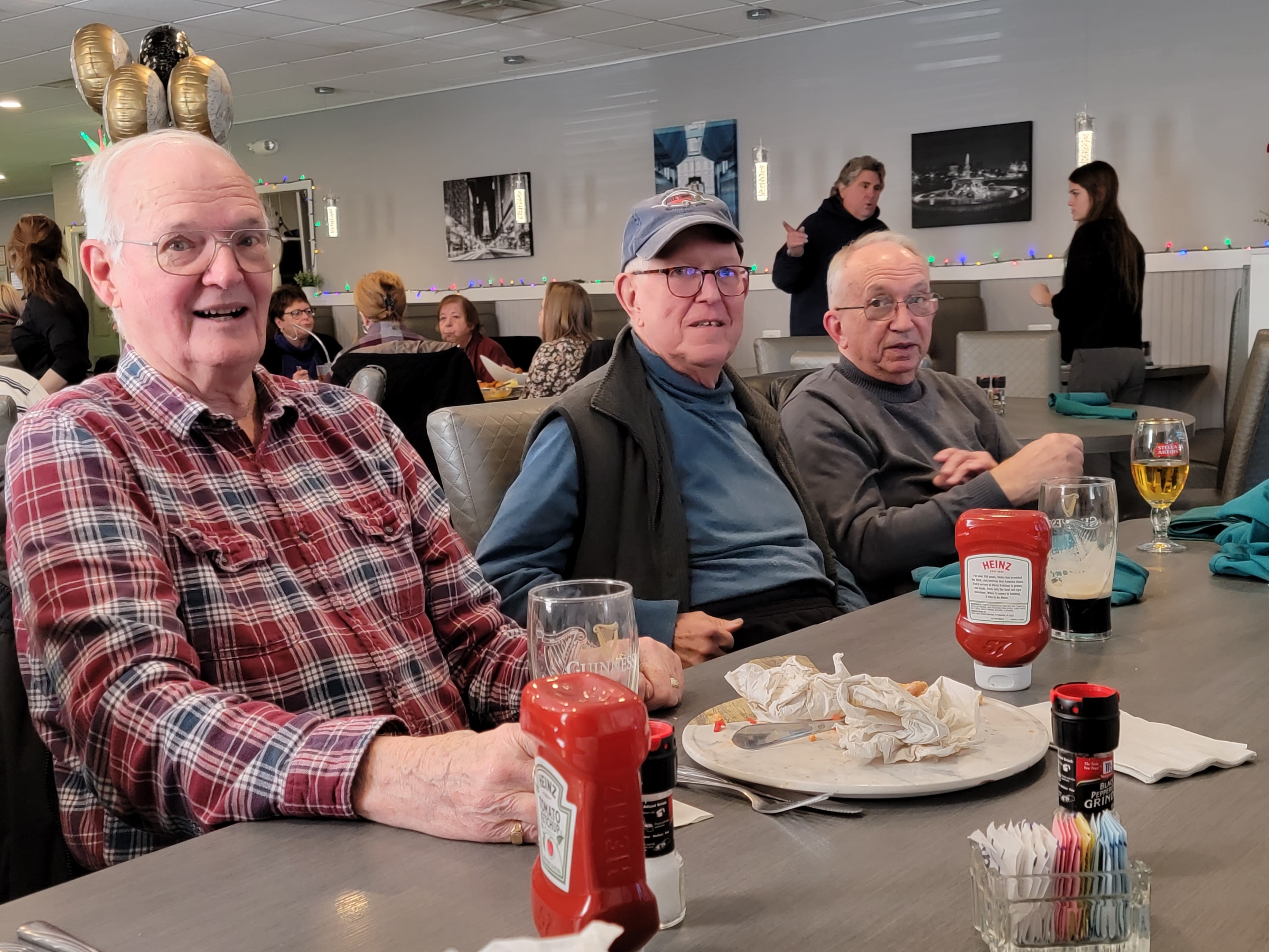 Photo 07:     Chuck Bell, server Julia (standing), Chuck Schubele